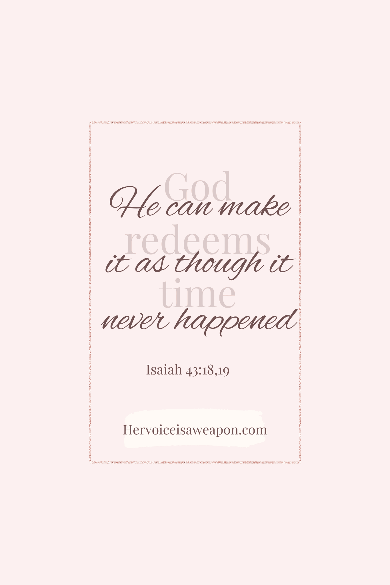 When I began to mix God’s promises with faith, I saw restoration in areas I thought were gone forever. God redeems time — and He can make it as though it never happened.