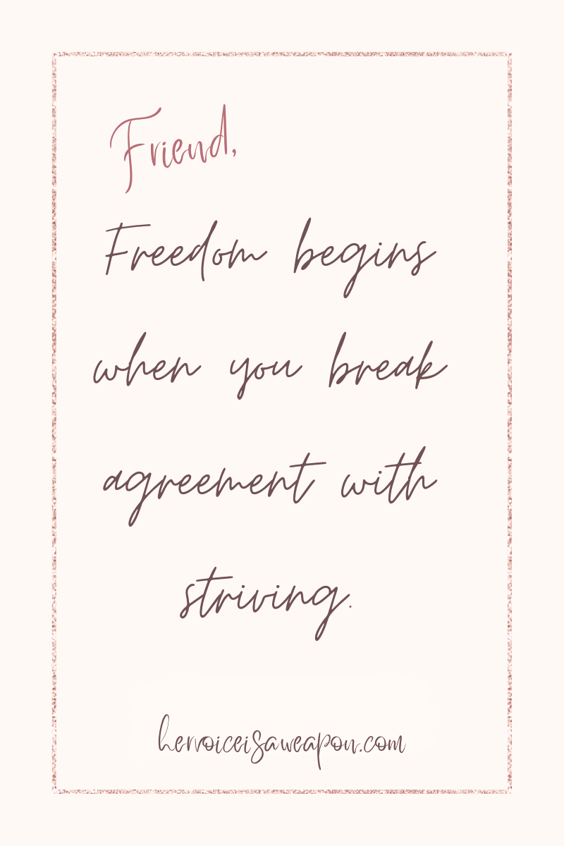 Freedom begins when you break agreement with striving and step into your identity as God’s daughter.