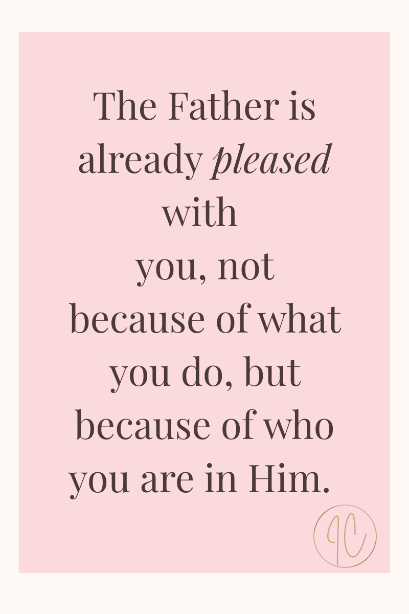 The Father is already pleased with you, not because of what you do, but because of who you are in Him.